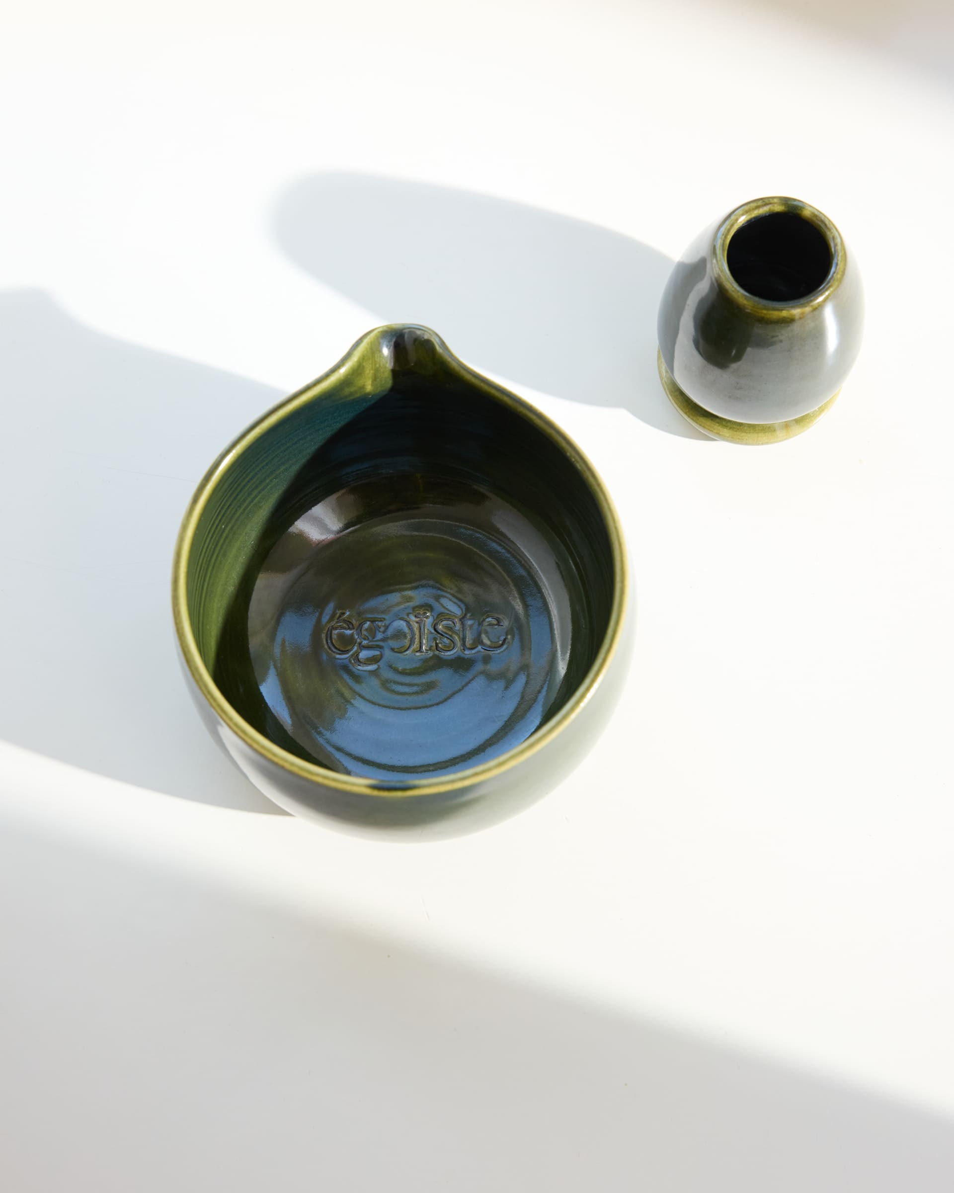 Bowl und Holder, handgefertigt in Polen aus glasiertem Steinzeug.